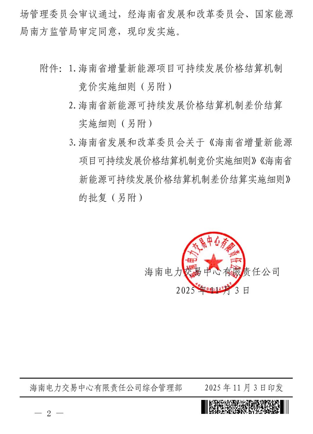 11月3日,海南電力交易中心印發海南省新能源上網電價市場化改革配套細則的通知,實施細則提到,適用于2025年6月1日及以后投產的且未納入機制執行范圍的新能源項目(風電、太陽能發電項目,下同)。選擇全部自發自用模式的大型工商業分布式光伏項目,不納入機制電價競價主體范圍。2025年6月1日前已明確電價的光熱項目、競爭性配置的海上風電項目,不納入機制電價競價主體范圍。詳情如下::
