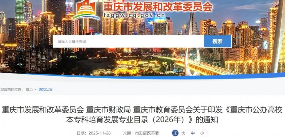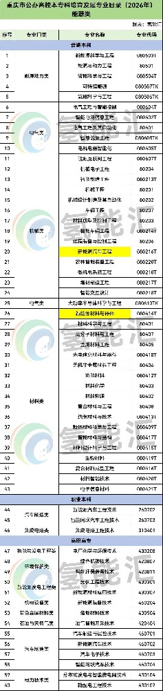 近日,重慶市發展和改革委員會 重慶市財政局 重慶市教育委員會關于印發《重慶市公辦高校本專科培育發展專業目錄(2026年)》的通知。 文件指出,為助推教育強市建設,精準對接重慶市“33618”現代制造業集群體系和“416”科技創新布局,強化人才培養與產業需求的精準匹配,重慶市公布公辦高校本專科培育發展專業目錄(2026年)。 氫能匯通過梳理發現,新能源、氫能、光伏、儲能、能源互聯網、智能電網、新能源汽車、分布式發電與智能微電網等納入高校本專科培育發展專業目錄。 具體如下: 重慶市發展和改革委員會 重慶市財政局 重慶市教育委員會關于印發《重慶市公辦高校本專科培育發展專業目錄(2026年)》的通知 各公辦高等學校: 為助推教育強市建設,精準對接重慶市“33618”現代制造業集群體系和“416”科技創新布局,強化人才培養與產業需求的精準匹配,按照《關于優化我市公辦高校本專科學費形成機制的通知》(渝發改規范〔2025〕8號)文件要求,市發展改革委會同市財政局、市教委在征求相關行業主管部門意見基礎上,制定了《重慶市公辦高校本專科培育發展專業目錄(2026年)》,現公布如下。 重慶市發展和改革委員會 重慶市財政局 重慶市教育委員會 2025年11月28日